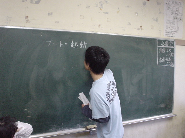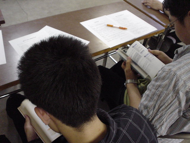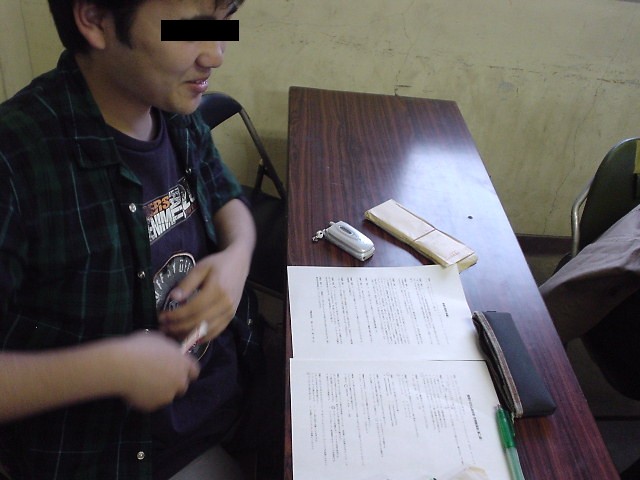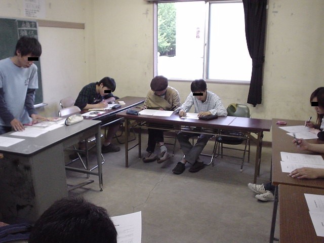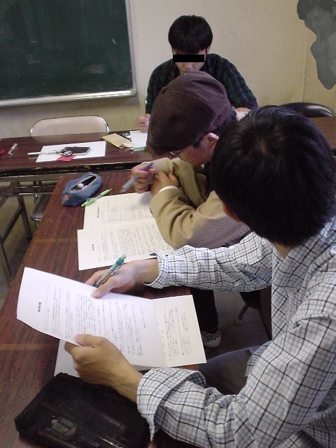 2003年5月30日に行われた勉強会の写真です。例によって、神岡さんのデジカメで撮影しました。画像形式は全てJPEG、一枚あたりのサイズは平均して70KB前後です。やはり目を消してありますが、マフィアの会合でもなければ、治安当局の作戦会議でもありません。